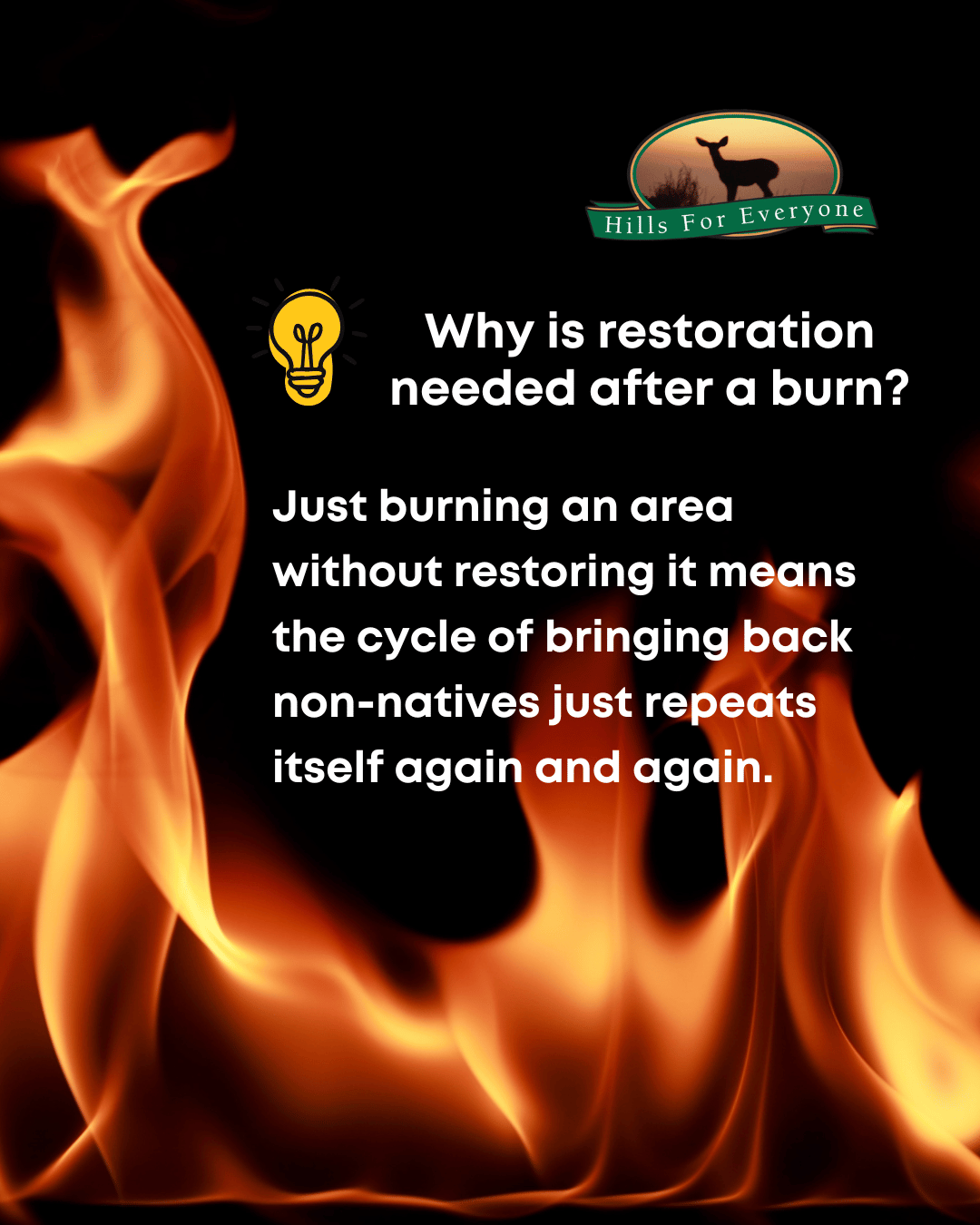 As a note, prescribed burns should include a restoration plan or else the repeatable cycle of non-native plant growth will continue to occur making the area more easily ignitable.